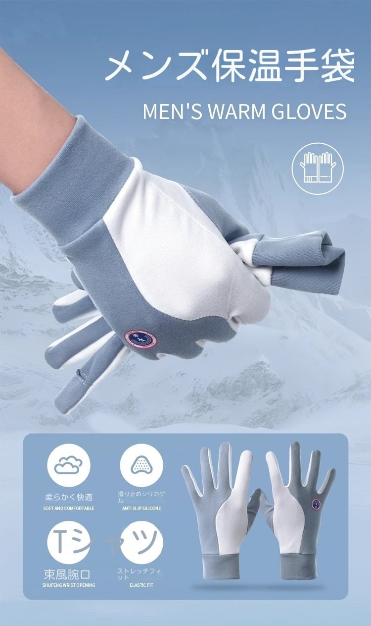 秋冬ゴルフ手袋 男士保温防風 デロン翻指 スキー 自転車防滑スポーツ手袋 タッチスクリーン対応