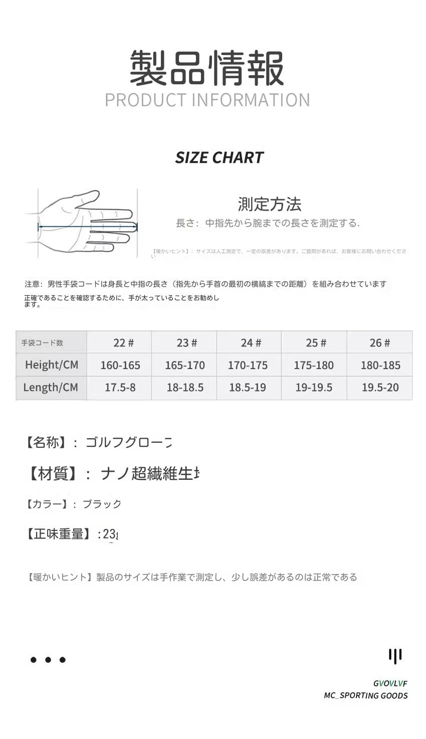 【商品名】GVOVLVF ナノ超繊維ゴルフグローブ 左手用