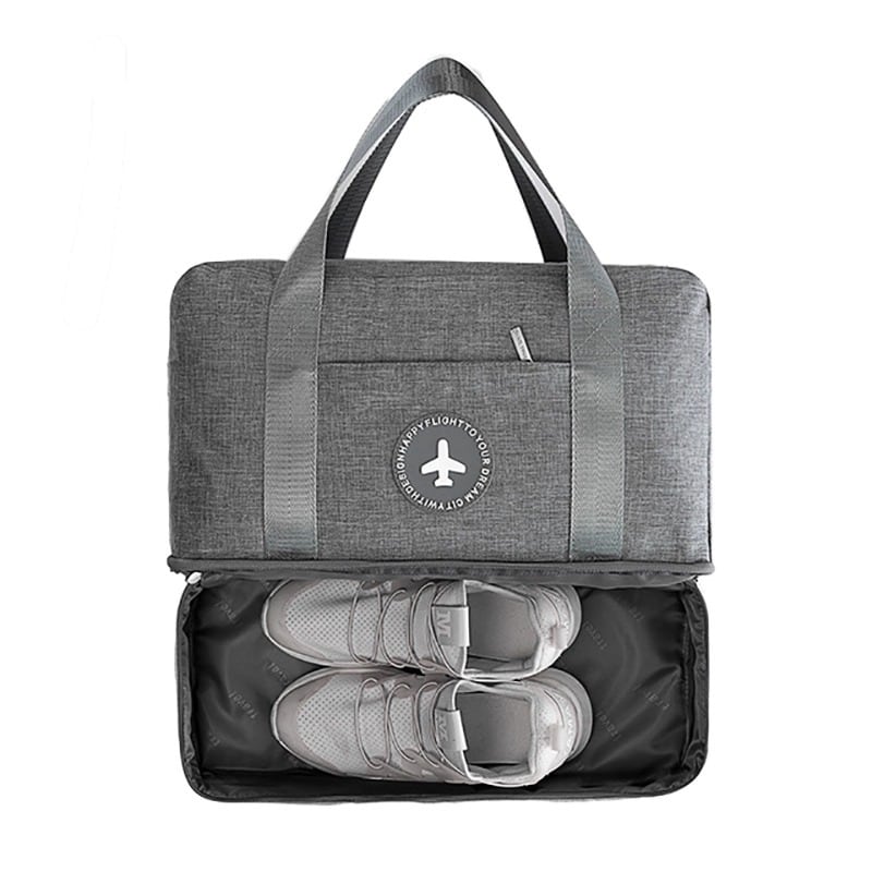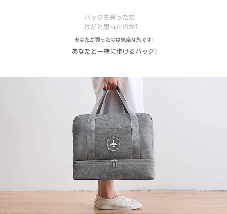 上下二層に分かれた構造で、衣類とシューズを分けて収納可能。清潔で整理整頓しやすく、旅行やスポーツに最適です。