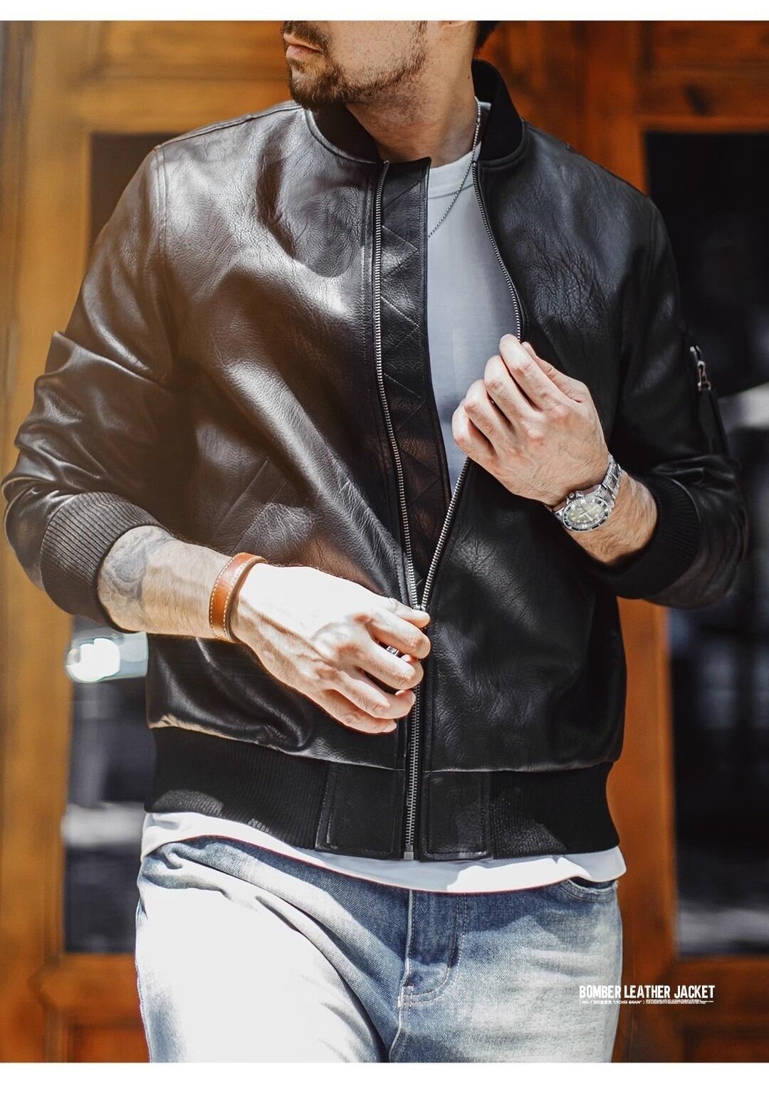 マーデンワークウェア アメリカンスタイル ブラック MA1 フライト レザー ジャケット 痞 ショート丈 ライチ柄 ショート丈 アウター メンズ 秋